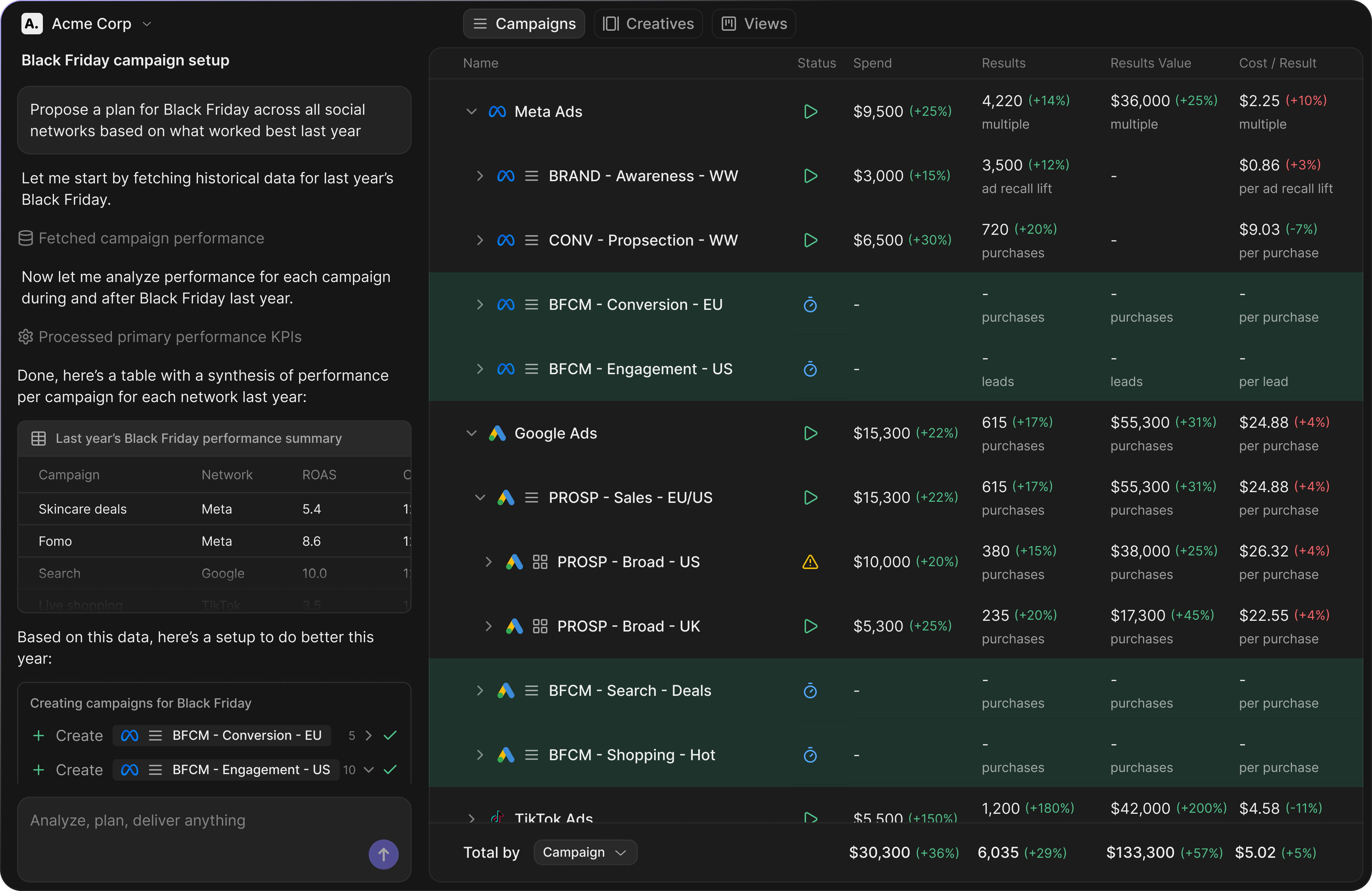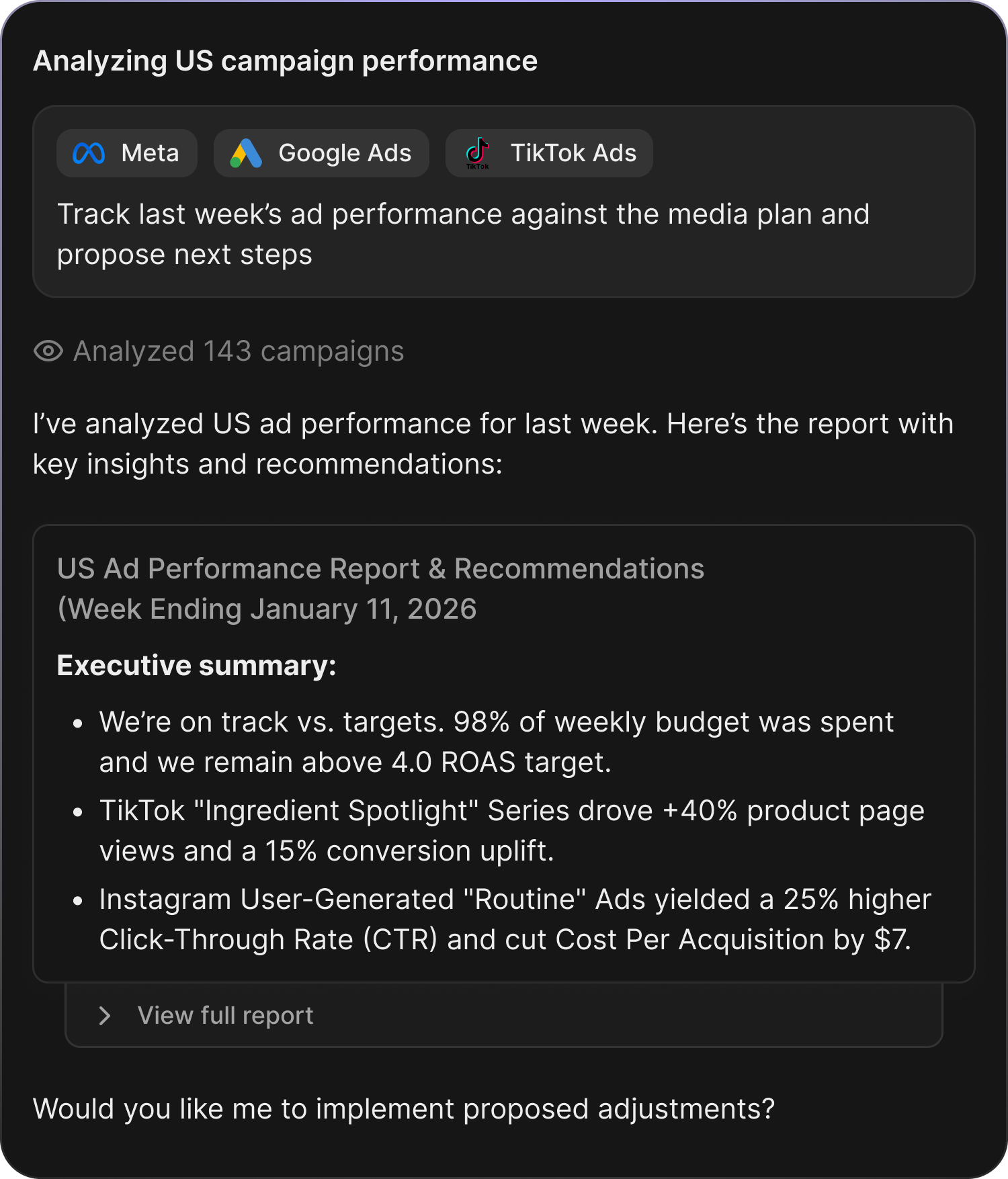 Partner with AI to run daily checks, prepare a QBR, or implement Media Mix Modeling